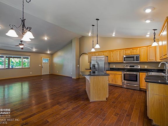 Beautiful 5-bedroom, 3-bathroom residence offers the perfect combination of space, comfort, and style—all set against the backdrop of breathtaking Heart Mountain views. Step inside and be greeted by vaulted ceilings and an abundance of natural light. The open-concept living and dining areas flow seamlessly, featuring rich wood floors and granite countertops that elevate the kitchen's modern appeal. Outside, enjoy the best of Wyoming living with RV parking complete with water and sewer hookups, and an oversized, heated two-car garage—perfect for storage, hobbies, or staying warm in winter. Located just minutes from parks, walking paths, and Cody Middle School, this home combines convenience with scenic serenity. It’s waiting for you to make it your own. Don’t miss this opportunity to own a home that checks all the boxes.