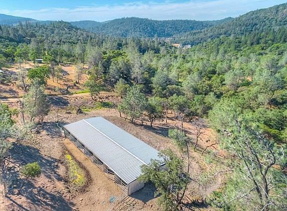 Lake Oroville Ranch For Sale. Equestrian Property. Fully Self Sustainable Off Grid Home For Sale. Horser Property with Barn For Sale. What a special place! Fully Self Sustainable Ranch known as "The Home At Last Sanctuary". An animal rescue shelter for horses, cows, goats & other farm animals. Just up from beautiful Lake Oroville & Lake Oroville Marina. Situated just off HWY 70 in the foothills at the beginning of the Sierra Nevada Mountains with easy paved access to property. Newer home in recent years past. Breezeway with large 2 car garage. Consists of 2 bedrooms, one of which being a master suite. 2 bathrooms with an additional half bath off mud room area. Tall ceilings and wood burning fireplace. Rear covered deck with large overhang and expansive foothill views. Designed to live off grid with 4 producing wells, septic & fully owned solar set up. Excess cross fencing. A 14 stall solid metal Mare Barn sits in its own area. Additional separated areas with potential of 12+ additional covered stalls. Wells sit in different areas to service different parts of property including two at lower end of land with holding tank to serve the lower back pasture. A beautiful fenced meadow setting surrounded by trees & hills in every direction with neat seasonal water run off ravine blanketed in quartz outcroppings. Scattered trees and foliage. A unique, quiet serene set up. Ready to go for the individual looking for a ranch style set up. Owner may carry with half down+/- on reasonable terms. -Adjacent 11+ acres with massive ag building, septic & well available at an additional price. Lake Oroville, The Feather River, The Forebay, The Afterbay all within miles/minutes of proeprty for watersports, recreation, boating, houseboat storage. Miles and miles of horseback, hiking and biking trails in the area.