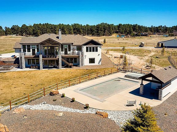 This stunning 2016 custom home, sitting on 10 acres, and close to downtown Parker, is a must see. Featuring an oversized attached 3 car garage and a detached 3 car outbuilding where you have more than enough room for all of your toys. This breathtaking 6,530 sq ft ranch home is perfectly situated on its 10 acre lot with unmatched front range views. Professional landscaping and a 3 stall barn with fenced pastures lines the property. This property is an entertainers dream home with top of the line finishes through out including a wolf range, subzero refrigerator, decora cherry cabinets, quartz counter tops, and the list goes on and on. The enormous deck and pool/hot tub with pool house are waiting for your summer enjoyment. Don't miss this opportunity to own a newer construction property with all perks of country living. See virtual tour for even more pictures!