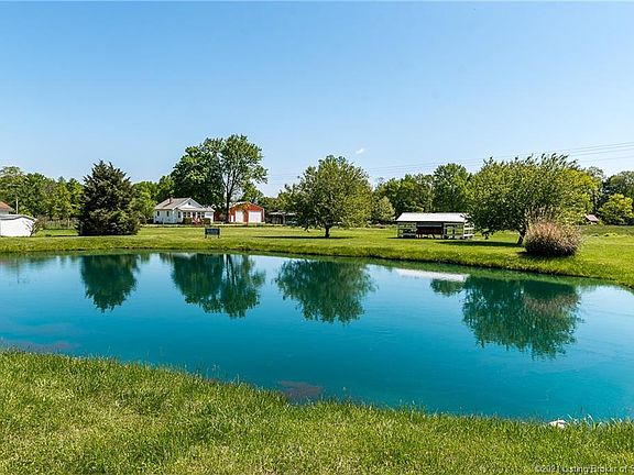 What a property!! 4/5 Bedroom 1.5 bath home on 3.4 acres and a stocked pond ready for your love of fishing! This Country home is located less then 5 minutes from New Albany. Features include a family room with fireplace, dining room, kitchen, 2/3 bedrooms on the first floor with an open closet concept and a living room currently being used as a bedroom. Updates include, remodel & expanded the hall bathroom, installed larger gas water heater, remodeled 2nd floor, remodeled kitchen with new cabinets, countertops, sink, flooring, kitchen island, stove, hood, new outlets and switches throughout, new light fixtures/fans in bedrooms. New carpet in the bedrooms and second floor. New sump pump added, new toilets, new water line to yard hydrant next to garden shed. Built garden shed & chicken coop. Fenced back portion of property. Removed some dead trees. Ready for the new owners. You'll find 2 additional bedrooms and a loft area on the 2nd floor! Also includes a full unfinished basement. The outside you'll find 2 out buildings (detached garage & barn), basketball goal, front and back porch and of course the fishing pond. Check it out! Sq ft & rm sz approx.