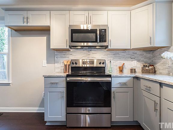 GORGEOUS one level living with upgrades galore! Features a custom designer kitchen with new shaker cabinets, granite countertops, tile back splash and stainless steel appliances. New EXOTIC Bamboo hand scraped hardwood flooring; NEW plush carpet & designer paint. New water heater 2020. Convenient to Downtown Raleigh and 440. Move in and enjoy!