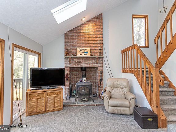 Immaculate 3 bdrm lakefront vacation home nestled in popular Lake in the Clouds is conveniently located minutes from 447, 390, 191, 80, & 423! The sundrenched great room boasts vaulted ceilings, bright skylights, dramatic floor-to-ceiling brick fireplace with pellet stove insert, and sliders to the huge deck that overlooks the stunning lake of glass! The kitchen features oak cabinets, large island, and leads to the elegant dining room with exquisite chandelier, recessed lighting, & sliders to a second deck. The master bedroom has cathedral vaulted ceilings, plush carpeting, large closet, and Juliet balcony. Easy access to Camelback Mtn, Mt Airy Casino, Kalahari, State Gamelands , and the Crossings Outlets. Don't forget the roof was installed in 2018!