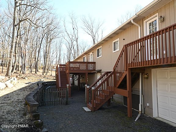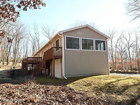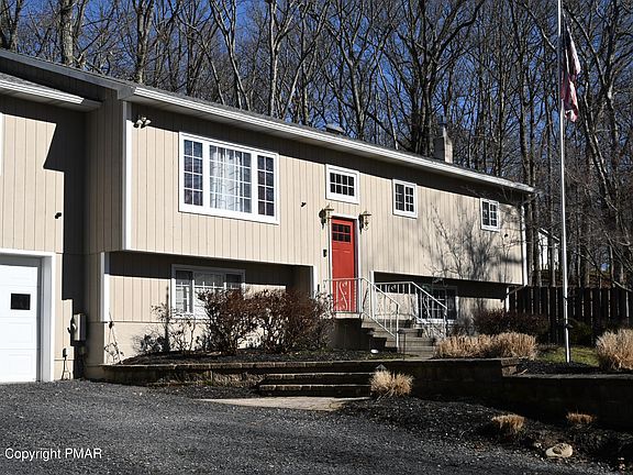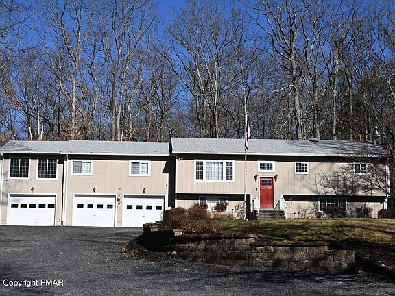 This is a 1 owner home which was built-in 1983. AS the years passed improvement and upgrades were made Kitchen, Dining, Living Room were opened up to create one large open room. Custom Birch Cabinets, Silestone Quartz Countertop & Island were added with Wall-Oven w/Microwave & Counter Cook-top. In Addition, H/W Flooring, Recess Lighting, Oak Railing w/Stairs was added to this entire area. 3 Bedrooms & 2 baths are part of the Original Home. A Master bedroom Suite was added with Walkin Closet, Full Bath w/ Shower & Jetted Tub. Both rooms also have Pocket Doors. A Heated Enclosed Porch was also added with an exterior door to a private deck. The lower level includes a Family Room, a 4th Bedroom, & a Maid/M&D unit with Full Kitchen & Bath. The original two garages are attached to lower Level. Other items added during seller ownership include Professional Landscaping Retaining walls (front along driveway) and rear of home, lighting fixtures inside the landscaped areas. Front Driveway also has Landscaped walls with 2 Pillars with lights attached. Rear Deck was enlarged in the mid 1980's. Roof was just replaced. Electrical Panel box was also upgraded. Garage Space totals 884 SF, Decking Total 321 SF. The 3rd Garage was added to the end of the original 2 Car Garage. Site is serviced by Pennsylvania American Water and an on-site Septic System. This site is situated on a Cul-De-Sac with no thru traffic. The Bushkill Firehouse is located on Evergreen Drive which is around the corner from Long Court. The children in Rustic Acres are picked up (by bus) in the AM at the Firehouse and returned there in the Afternoon. The roads in Rustic Acres are managed by Lehman Township year-round. There is no HOA or Dues in Rustic Acres. Homes are supplied central water by PA American Water. Our home has a Sand Mound Septic System to handle the Septic Waste. Trash is the responsibility of the Homeowner. There are several companies that cover this area. The East Stroudsburg North School system is located off Bushkill Falls Road. There are 3 schools: Elementary, Middle and High School. All 3 schools are separated buildings and located in the same general area.