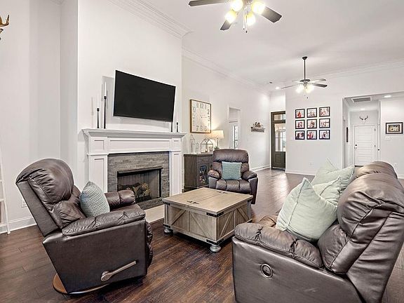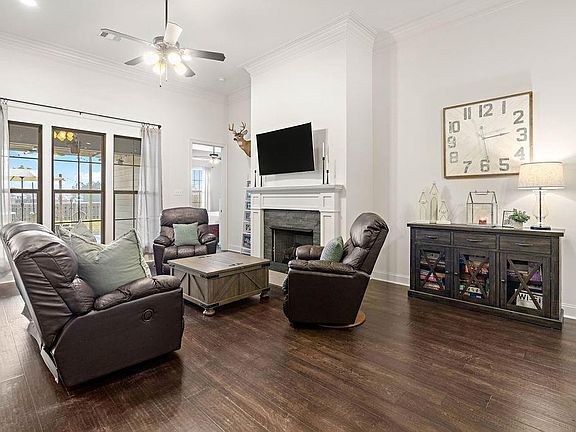 Offering Seller's concessions!! Decorator touches in this one! NO CARPET, Wood in all rooms except tile in wet areas. Stunning 4 bed 3 bath home located in the highly desired gated community of Bedico Creek subdivision. Bedico Creek offers mile of trails with beautiful wilderness views, community parks and a community pool. You are greeted to a welcoming front entry that leads into the split open floor plan. The living room features wood flooring, soaring ceilings with a lot of crowning molding, cozy fireplace, and an abundance of windows to let the natural light pour in. The living room seamlessly transitions into the kitchen and breakfast room. The kitchen offers a glass backsplash, granite countertops, Navy blue centerpiece island, stainless appliances, gas cooktop, and a pantry. The breakfast area has wood/shiplap wall painted a sage green with rattan shade. The private primary en suite boast tall tray ceilings, dual vanities, separate shower, jetted tub, water closet, and a walk-in closet. One spare bedroom can be use as a guest suite with it having its own bath in the hallway. The other spare rooms are separated sharing a full sized bath. Check out the wood wall accent in one of the bedrooms! From the breakfast room step out onto your own personal paradise with a covered patio overlooking the fully fenced in back yard with open green space. The patio has been extended across the back of the house to offer multiple entertaining areas. This home is perfect for anyone looking to have the extra space to entertain friends and family.