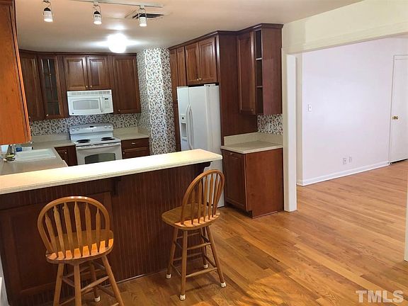 Immaculate brick Ranch minutes from Brier Creek, RTP & I-540. Beautiful hardwoods throughout, spacious family room with natural light, 3 good sized bedrooms & fully equipped kitchen with corian counters, breakfast-bar & beautiful high-end cherry cabinets. 1-car carport + storage shed. Landscaping is included, sorry NO PETS!!