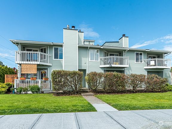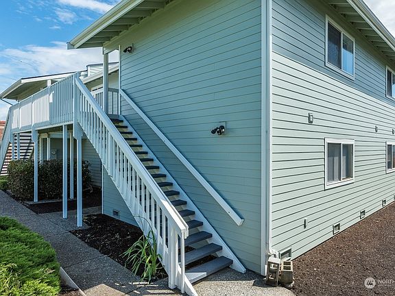 Experience downtown living in this top-floor corner unit. Enjoy the beautiful Mt. Baker and Puget Sound views from your private, sprawling deck. This spacious condo offers a light and bright kitchen with a skylight, 2 covered parking spaces, and ample storage throughout. Recently updated with new siding and LVP flooring, this home features a modern bathroom, a primary bedroom with a walk-in closet and ensuite, and convenient in-unit laundry. Enjoy a serene retreat close to downtown with all the comforts you desire. Your dream condo awaits!