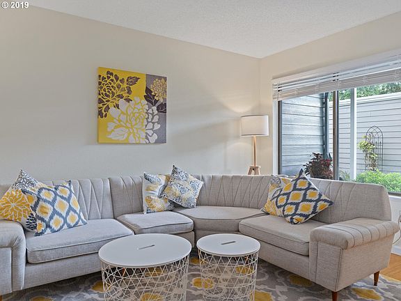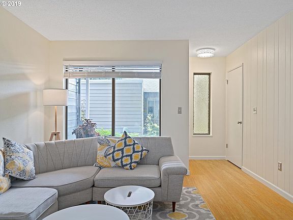 Rare, renovated creekside condo blocks to Multnomah Village. One level, 2 bdrms/1 bath + fab, new 190sf Trex deck overlooking peaceful grnspace & creek. All new lux vinyl plank flooring throughout. Top-to-bottom new interior paint. Kitchen w/deep sink, eat area, pantry & new countertops & brand new, stainless/s appliances. Updated bathrm, laundry closet All this + det. garage, park space, store rm, nature path & pool!