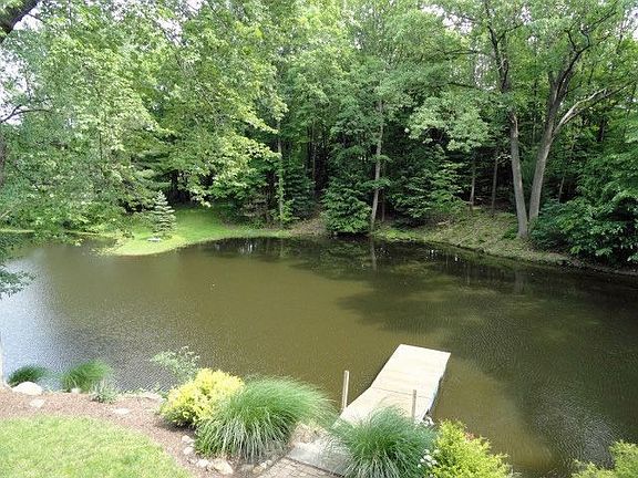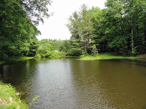 Breathtaking setting surrounded by nature. Almost 3 acres of privacy and large pond w/dock. The spacious ranch has a 26x23 great room with lots of windows allowing beautiful views through all seasons. The gorgeous stone fireplace opens to the fireplace in the dining room. The large kitchen as updated cabinetry, ceramic flooring, center island & dinette area that leads to the deck. Large foyer with open staircase leads to the finished walk-out lower level where the rec room with fireplace is located and access to the patio that overlooks the pond. Updated baths one of which has a lovely tile shower. There is a detached A-Frame building that has many options for usage. Newer septic system. Newer windows. Such a great place to call home.