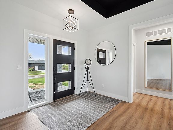This beautiful 4 bedroom, 3 bath home is sure to please with its stunning design and style. Exciting amenities include: Custom kitchen with quartz waterfall countertops, backsplash, under cabinet and toe-kick lighting, gas stove with range hood, stainless appliances, and large walk–in pantry. Enjoy the sunlight with the atrium staircase, custom railing, and volume ceilings. Other features include a primary suite with tiled shower and double vanity, main level contemporary fireplace, lower level rec room, large patio area, heated garage with floor drain. This fabulous home shows like new and is waiting for you!