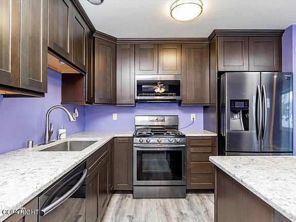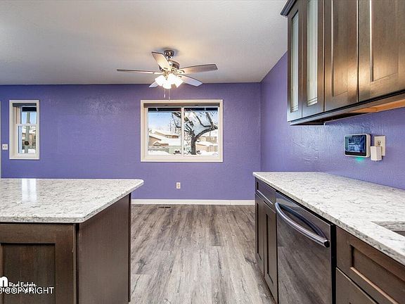 Cute 2 bedroom Anchorage home with fenced backyard. This home has a covered front portch entry, upgraded kitchen cabinets with a center island and stainless steel appliances, upgraded bathroom, LVP flooring throughout, Large shed in the back yard with a nice deck. It even has a newer furnace and hot water heater. Come take a look!