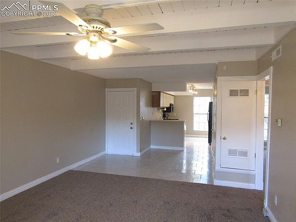 Spacious 2 Bedroom 1 bath ground level condo with large living room, walk out patio. Patio has storage space with ample room. Freshly painted unit with new carpeting. Nice size bedrooms with ample closet space. Tile in the entryway, kitchen, dining and bathroom floors. The pool, hot tub, club house, fitness center and laundry facility are conveniently located on the property. Common utilities, convenient enforcement, exterior maintenance, heat, insurance, lawn care, management, snow and trash removal and water included with the HOA dues. One assigned parking space. Easy access to Academy Blvd. Close to medical care, shopping, parks, and hiking.
