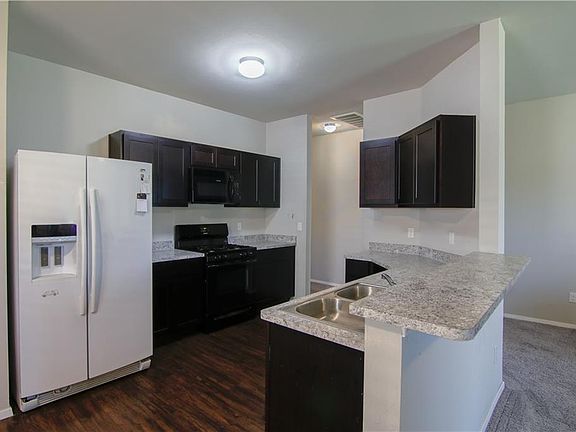 This charming energy efficient home has an open and airy main living space. The kitchen provides plenty of cabinet storage with ample countertop space, eat-in bar, and connecting dining space. A large master suite is situated just off the kitchen with private ensuite to include a large vanity, shower/bath combo and built in shelving. Two additional bedrooms and full guest bath complete the inside of the home. Outside, relax under the covered back patio overlooking the back yard.