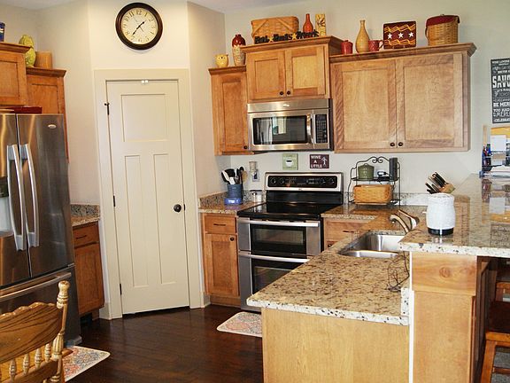 This is a beautiful 5-bedroom walkout ranch that was in the 2011 Parade of Homes! Quality touches & upgrades include 9-ft. ceilings, hardwood floors, gas fireplace, granite counter tops, pantry, main level laundry, surround sound, central vac, 2x6 construction, and quality finish in the lower level to create almost 3,000 sf finished space in this energy-star rated home! The master bedroom suite has treyed ceiling, crown moulding, double sink vanity, tiled walk-in shower and a walk-in closet.