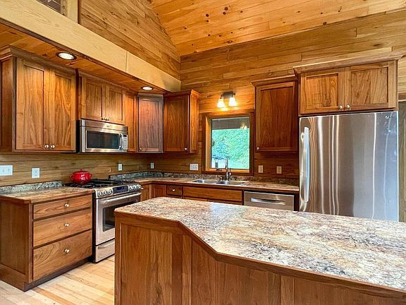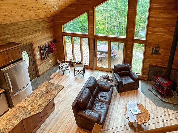 A rare combination of waterfront & wooded privacy is what you will find at this 3 bedroom, 2 bath home on 105 acres w/ 380 feet of Washburn Lake frontage. The home's main level features the master bedroom w/ white ash walls & hickory flooring, full bath w/ laundry, and an open concept kitchen, dining, and living space w/ a Vermont Castings wood stove, black walnut cabinets, and a white pine cathedral ceiling. A white oak staircase leads to the lofted upper level bedroom w/ red oak flooring while the lower level provides a 3rd bedroom, 2nd full bath, family room w/ gas stove & walkout, rec room, and a 15x34 storage room w/ garage door. Located adjacent to Oneida County forest land & selectively managed to produce large red oaks, the primarily high-grounded parcel is a true haven for wildlife with a network of established, drivable trails, open yard space perfect for food plots, and your own private lake with a rustic cabin and space for a wonderful building site overlooking the water.