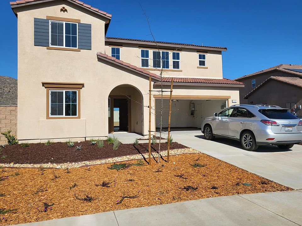 This is the brand NEW CONSTRUCTION at Pleasant Valley Ranch in Winchester! This beautiful two-story home features a Hacienda facade with a DOWNSTAIRS bedroom and full bathroom. Upstairs, 3 bedrooms, 2 full bathrooms, a LARGE loft area and laundry room with EXTRA STORAGE room. The Island Kitchen includes Whirlpool stainless steel gas cooktop and oven, microwave, dishwasher, QUARTZ counter tops with Smoke stained maple shaker-styled cabinetry and Rexford DESIGNER flooring throughout. Also, a direct access 2-car garage PRE-PLUMBED for an electric car! This truly modern home has all the SmartHome features you would expect and, is FULLY LANDSCAPED AND IRRIGATED in the front yard. Among the features and finishes, you will appreciate the unparalleled peace of mind of America's Smarthome? A whole-home network of Wi-Fi enabled smart home devices by brands you trust, all conveniently controlled from your smartphone or the sleek touch screen panel mounted near the entry of each new home. This new built home has solar system which saves electric bills. This home is situated close to neighborhood parks, shopping and freeway access. Proximity to famous Temecula wineries, fine dining, and shops.Perfect affordable commuter location with nearby access to Interstate-215 and State Route. Tenants responsible for utilities, trash and sewer. Security deposit required when moving in.
