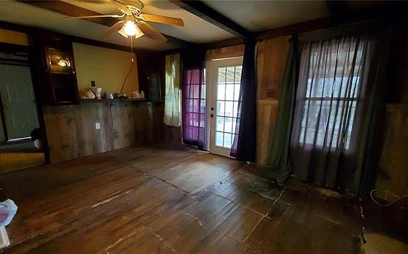 Fixer upper on 1.7 acres. 3 bdrms, 2 showers and a tub. Covered front deck with ramp. Pull out cabinets in kitchen. All appliances stay. There is plumbing in kitchen to put in big sink and that sink is in detached garage. Half Bathroom/laundry room has a pedestal sink in detached garage. 200 AMP breaker box. All electric home. Baseboard heat. Window units in detached garage. Barn, pasture and second outbuilding plus a two car detached garage. Property is fenced for horses. Swing set stays. Shelves in detached garage stays. Personal property that is left on land and in house stays with sale. Selling in AS-IS condition and seller will make no repairs. 2021-05-20