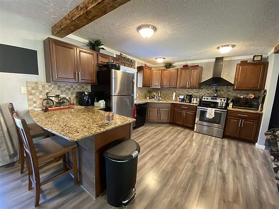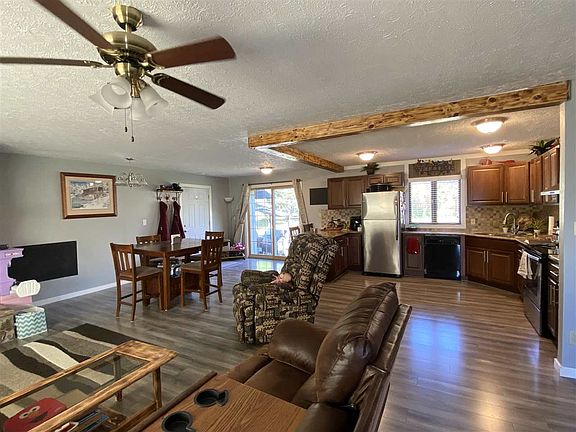 This open concept home with lots of natural light offers you 3 bedrooms, 1 bath and a 2 stall attached garage. Upon entering this home you are greeted by the nice open concept between the kitchen, dining room and living room. The kitchen is over-sized with lots of granite counter tops! The fireplace adds that nice cozy inviting feel for the upcoming cooler months. Down the hall you will find a nice closet/pantry and 3 decent size bedrooms and the bathroom. The bathroom is good sized with dual sinks, jetted tub with a nice tiled shower. The laundry is located conveniently off your bathroom through the barn door. Also, in the laundry room is a sink and a door that leads to the over-sized back yard that can also be accessed from the sliding door off the dining room. The 2 stall garage offer heat and workshop area. You won't want to miss your chance to see this home so contact a realtor today for a viewing!!!