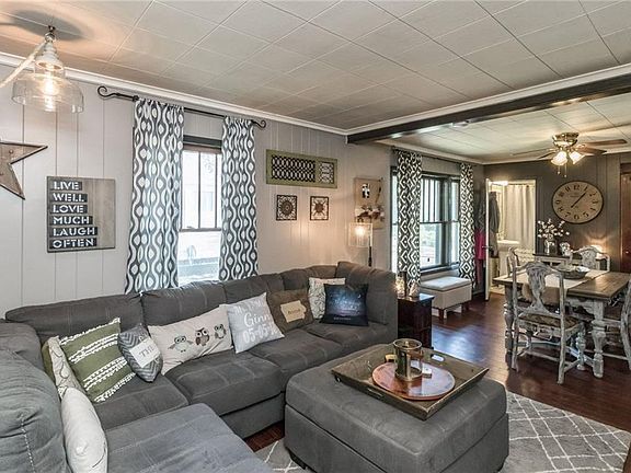 What a great 2 bedroom Ranch ready to move in! The enclosed front porch makes for a comfortable area to relax and enjoy with family and friends. Updated home with open living/dining area including built in cabinets, luxury vinyl plant flooring throughout, stainless steel appliances and tile floor bathroom. The lower level is open for a rec room, has a work bench area and a man cave room. Outside there is a fenced rear yard, utility shed and one stall garage. Come take a look! You'll call it home!