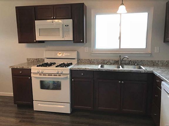 Open House 5/19 10-11:30. Wonderful location & neighborhood - 3 bed, 1 bath Ranch. Full basement w/large, open Family Rm or Rec Room & den/sleeping room. New steel entry doors, six panel doors, fresh light grey paint with new white trim. Brand new luxury laminate in all other rooms, beautiful hardwood just refinished in 3 bedrooms. Updated Eat in Kitchen with all new cabinets and counters. Plenty of cabinet storage and prep space, including a pantry cabinet, gas stove, refrigerator, microwave & dishwasher. Updated bathroom. Fenced yard, level, storage shed, patio and carport. It does back up to the St. Andrews Cinema parking lot. Schools are Monroe Elementary school, Jefferson/Hardin and St. Charles West. Rents for $1,195. Sorry, no pets & non-smoking home. 12 months lease with $1, 195 security deposit. Application & criminal check fee required. Low utility bills. Apply today!