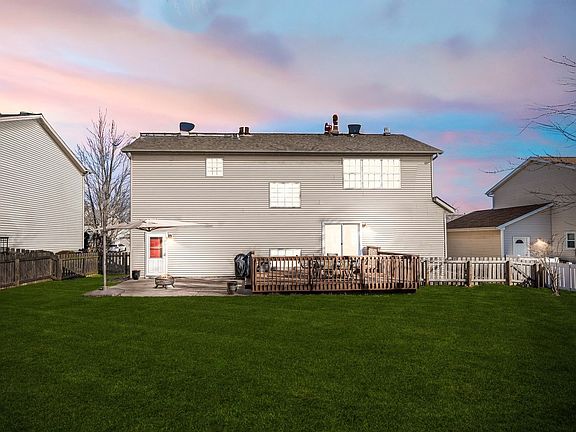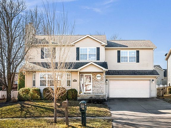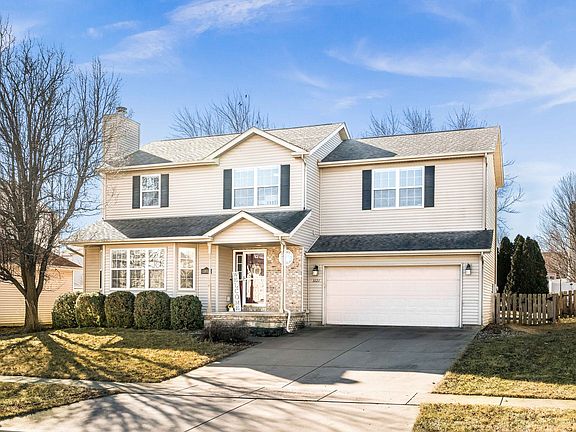 Step into this stately two-story nestled in sought after Golden Eagle and you'll find space and style on every level! From the modern finishes to the thoughtfully designed interiors, every corner speaks to the quality and care owners have invested to maintain this special property. Step into the airy main level with 9' ceilings and discover a blend of fresh finishes with traditional touches including crown molding, columns and fresh white trim adding elegance and style. New plush carpet plus a cool gray palette makes a complementing contrast to the natural wood and rich tile found throughout the main level. Stunning bay window bump-out with custom moldings is the feature of the family room while a cozy gas fireplace adds warmth. Open concept kitchen with plenty of counter space and cabinetry, offers newer stainless appliance suite including dishwasher, double sink, gas range and side-by-side nearly new refrigerator! Eat-in table space provides plenty of room for entertaining while a double slider floods the main level with bright southern sun and invites you into the serene back yard! Impressive, oversized fully fenced lot with detached shed offers a raised patio and lower level slab for endless entertaining! Half bath is just great for guests and additional coat closet for storage keeps the expansive foyer tidy. Attached two-car insulated garage plus upper storage shelves and workbench provides plenty of room for toys and tinkering. Upstairs, you'll find an impressively sized primary suite with vaulted ceiling, walk-in closet and a wall of windows offering tons of natural light! Private en-suite features new ceramic tile, large vanity, jetted tub, linen closet and walk-in closet. Two additional generously sized bedrooms with cozy carpets and tons of closet space plus full guest bath featuring new ceramic tile, updated vanity and tub/shower combo leave guests wanting to linger longer. An upper level laundry closet is a surprising and convenient addition to this impressive layout! If you are seeking more breathing room, head down the double U-Shaped staircase to the partially finished basement to find the 4th bedroom (with egress) plus yet another full bathroom! Full size windows with a modern feel mirror the style of the upper levels and offer a light and bright space for entertaining. Oversized fully fenced yard with mature trees and freshly stained raised deck and expansive slab patio. This private neighborhood offers tree-lined sidewalks and a nearby neighborhood park including trails, tennis courts, fields and splash pad all while being just minutes away from Veteran's Parkway! Amazing location nestled in quiet East Bloomington with easy access to nearby Unit 5 Schools, this home is ready for new owners to love!