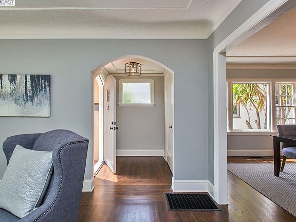 Built in 1927, this gorgeous English Tudor home is located in the sought-after Fernside neighborhood, w/close proximity to top schools, Lincoln Park & downtown Park St. The home has been updated with attention paid to maintaining its historic integrity. Period details & upgrades include coffered ceilings in living & dining rooms, dual pane windows, stunning fireplace, refinished hardwood floors, picture rails, crown moulding & rounded door/window trim. The updated, eat-in kitchen has a breakfast nook, black granite counters & SS appliances. There are two main level bedrooms & a renovated full bathroom. The next ½ level features another bedroom & a bonus room w/loft, perfect for a playroom. The dramatic master suite w/ vaulted ceilings & 4 skylights has custom built-ins, an elegant en-suite bathroom & an additional room for a private office, sitting room or nursery. Detached garage (or office/studio space) & long driveway. Easy access to I-880, BART, SF Ferry & Oakland Airport.