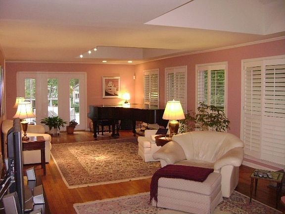 3121 Beechrun Dr. was built in 1973 with a soft-contemporary exterior style. This immaculately maintained one-owner home offers unbelieveable space, a fantastic floorplan, upgrades galore, and is nestled in a quiet, established neighborhood, surrounded by the most beautiful landscaping. The home offers four spacious bedrooms, a separate living room, a formal dining room, a gourmet kitchen, a den/music room, a laundry room, a loft with built-ins and so much more! The huge living room offers solid red-oak hardwood floors, floor-to-ceiling windows, plantation blinds, custom skylights, built-ins, a ventless gas fireplace, with french doors leading to the deck, and two entries from the room leading into the formal dining and kitchen spaces. The formal dining room is also oversized, offers gleaming hardwoods, fresh interior paint, and is convenient to the living room and kitchen. There is a nice half-bath off the dining room for convenience as well. The kitchen has been renovated to include a gas cooktop, a built-in convection oven, a Sub-Zero Side-by-Side fridge (that stays!), has Corian countertops, a dishwasher, a disposal, custom lighting and a large breakfast area with views of the rear deck. The separate laundry room is off the kitchen (washer & dryer stay too!). The 2-car side-load garage was enclosed some years back to make a music room for the current owners. This modification was done beautifully, with it's beamed ceilings, hardwood floors, custom sound design, and sunken space. Would work wonderfully as a sunken den. The master suite is also located on the main floor of the home, and offers solid red-oak hardwood flooring, an entire wall of double closets (three of them to be exact!), a custom ceiling, and the master bath has just been renovated to include a new granite custom double vanity, new brushed nickel plumbing, new lighting, and new tiles in the shower. The second bedroom upstairs is almost like having a second master - it's also huge, has ample closet