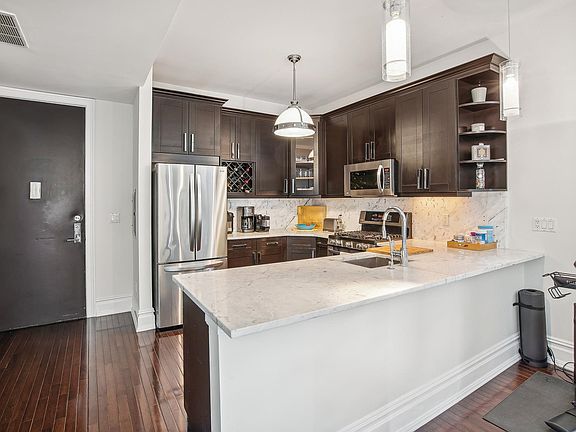 HIGHEST & BEST due 6/29 @ 12:00pm. Luxury awaits at this exquisite top-floor condo. Enjoy 2 bedrooms, 2 baths, and garage parking in the prestigious Ardan House. Bright and open living area with custom built-in entertainment center. High-end finishes include a kitchen with maple cabinets, granite counters, and stainless steel appliances, as well as elegant bathrooms with Waterworks fixtures and travertine marble walls. Unit offers one covered parking space. In-home laundry. Conveniently located near shops, restaurants, and NYC transportation. Entrance is located at 708 Sip