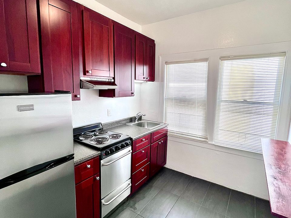 MOVE IN SPECIAL! Receive the keys 30 days before the start date of the lease so you can move in at your own pace. So for example, if the lease starts on October 1, 2025, you would get the keys on September 1, 2025. Building features include a lobby entrance, door security/intercom system, cable-internet hookups in each apartment and newer on-site laundry facilities with 4 Speed Queen machines on each floor - total of 12 machines. A timeless fusion of old world and modern charm best describes this historic building that has been lovingly restored in the heart of the vibrant Fruitvale Neighborhood. The entire building has undergone an interior renovation. This top floor of 3 floors apartment itself was remodeled with brand new carpet, and mini/blinds and paint. Track lighting and cherry wood cabinet kitchen with chrome brass knobs, , newer electric stove and refrigerator. Bathroom is bright with shower over tub. There are 3 windows so the apartment gets natural light. Apartment faces north. 3 blocks to the FRUITVALE BART STATION, the property is around the corner from Fruitvale Ave. and International Blvd. It is one of the busiest intersections in Oakland and is convenient to shops, cafes, restaurants, public transportation, Laney College, City of Alameda, Montclair, Oakland sports arenas, Lucky Supermarkets, Walgreens, downtown Oakland, and ONLY a 25 minute ride by BART to San Francisco. Many bus lines also run on Fruitvale and International. Sorry, no pets are allowed but Emotional Support animals (ESA) okay :) Sorry, no smoking as per the Oakland smoking ordinance relating to apartment/commercial buildings. The property is quiet and clean! Landlord and tenants seek someone who is too. Rent: $985 All utilities included for first 24 months from start of lease Security Deposit: $985 Lease term: 1 year Apartment is ready for move in Now IF YOU HAVE ANY QUESTIONS THAT ARE NOT ANSWERED IN THE POSTING, PLEASE CALL OR TEXT BETWEEN 9AM AND 6PM THANK YOU FOR CHECKING OUT THIS LISTING Rent: $995 All utilities included for first 24 months from start of lease Security Deposit: $995 Lease term: 1 year Apartment is ready for move in Now