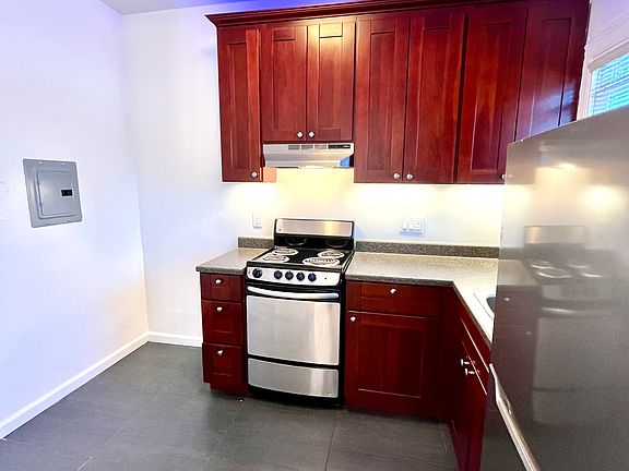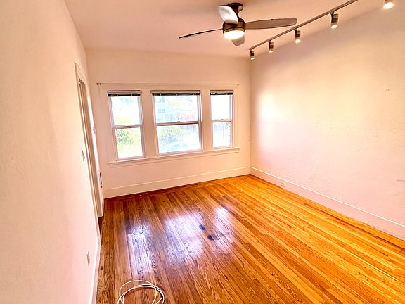 Building features include a lobby entrance, door security/intercom system, cable-internet hookups in each apartment and newer on-site laundry facilities with 4 Speed Queen machines on each floor. A timeless fusion of old world and modern charm best describes this historic building that has been lovingly restored in the heart of the vibrant Fruitvale Neighborhood. The entire building has undergone an interior renovation. This 1st floor of 3 floors apartment itself was remodeled with hardwood floor, and mini/blinds and paint. Track lighting and cherry wood cabinet kitchen with chrome brass knobs, , newer electric stove and refrigerator. Bathroom is bright with shower over tub. There are 3 windows so the apartment gets natural light. Apartment faces East. 3 blocks to the FRUITVALE BART STATION, the property is around the corner from Fruitvale Ave. and International Blvd. It is one of the busiest intersections in Oakland and is convenient to shops, cafes, restaurants, public transportation, Laney College, City of Alameda, Montclair, Oakland sports arenas, Lucky Supermarkets, Walgreens, downtown Oakland, and ONLY a 25 minute ride by BART to San Francisco. Many bus lines also run on Fruitvale and International. Sorry, no pets are allowed but Emotional Support animals (ESA) okay :) Sorry, no smoking as per the Oakland smoking ordinance relating to apartment/commercial buildings. The property is quiet and clean! Landlord and tenants seek someone who is too. Rent: $1,045 All utilities included for first 24 months from start of lease Security Deposit: $1,045 Lease term: 1 year Apartment is ready for move in Now CONTACT US BETWEEN 9AM AND 6PM THANK YOU FOR CHECKING OUT THIS LISTING Rent: $1,045 All utilities included for first 24 months from start of lease Security Deposit: $1,045 Lease term: 1 year Apartment is ready for move in Now