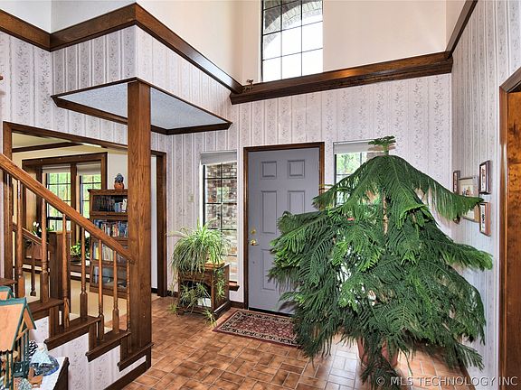 Warm & welcoming, spacious home w/views of the outdoors! Beautiful Craft Maid Cabinets w/rollouts & stunning granite in Kitchen w/5 burner gas stove w/vent hood & double ovens. Pantry, Built-in desk, all appliances stay including washer, dryer, refrigerator & freezer. Central Vacuum, New exterior siding, Wood burning FP w/gas start & blower. 2Furnaces, 2AC's plus little window supplemental in game room, 2 Hot Water tanks. Organic garden, Roof 8 yrs. Beautiful Redwood deck across the back. Jenks Schools!