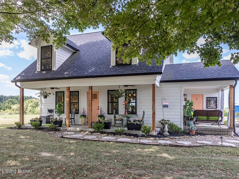 Fabulous Farm Style house in Oldham County! Over 2 acres, black board fencing and 24 x 34 garage. Like new 4BR, 2 1/2 BA with numerous outdoor living spaces. This home is right out of HGTV, beautiful setting with shade trees and adorable front and side porches.