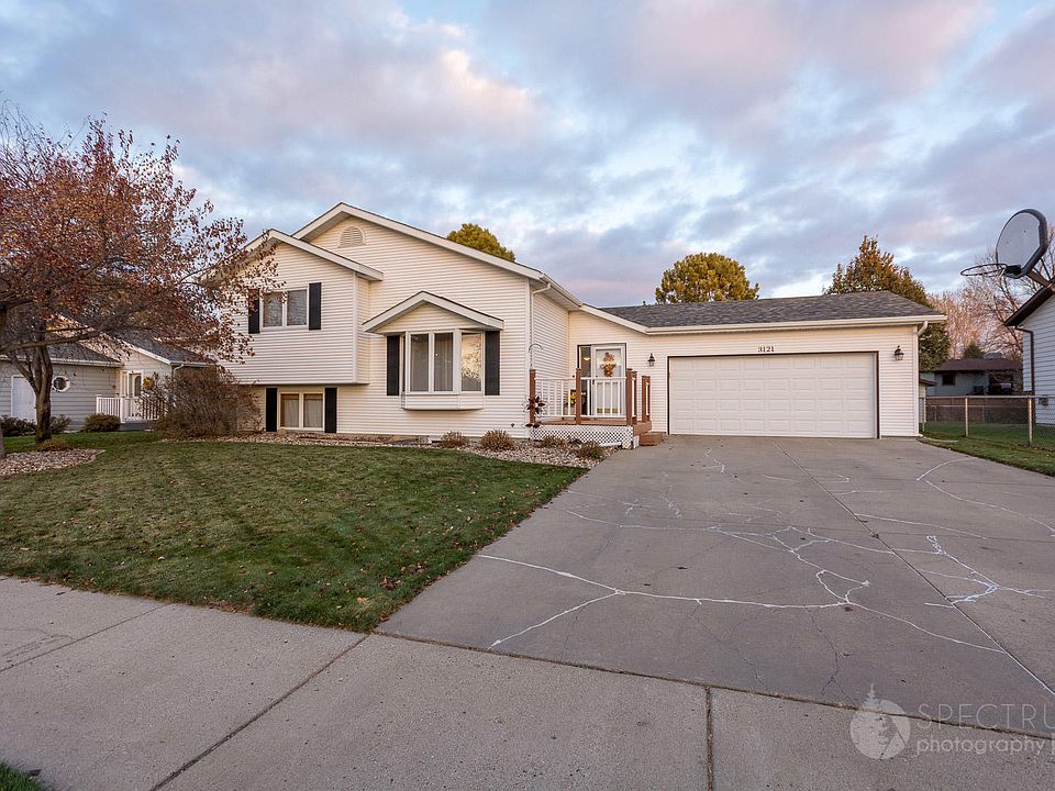 You will LOVE this multi-level home located in South Bismarck. The crisp and cheerful kitchen offers white cabinets, solid surface countertops, upgraded appliances, gas stove, tiled backsplash, center island and easy care flooring. The comfortable living room is open to the kitchen and dining room for easy entertaining. The dining room offers patio doors that open to a large maintenance free deck, beautiful fenced yard w/ sprinklers, patio and yard shed for storage. The upper level features two spacious bedrooms and main bath. The lower level is home a generously sized family room w/ daylight windows and another bedroom. Take a few steps down to the lowest level and you will find a updated bathroom w/ tiled shower and glass door. Additional bedroom, laundry and storage. Double heated garage. Don't miss out on this wonderful home! See it today!