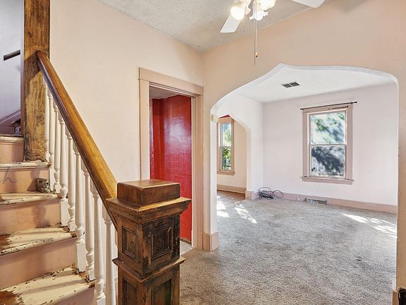 OPPORTUNITY to increase value of home on a street with higher priced homes! Home needs substantial work but will be a beauty when done! Nice architectural arches and leaded glass windows in formal areas. 9' ceilings on main floor. Wide base trim to re-do. Many rooms have hardwood floors peeking out from under old floor coverings. Main floor has porch, living room, formal dining room, good sized foyer and kitchen plus a 1/2 bath. Main floor bedroom too! Upper level has full bath plus 2 bedrooms and large storage closet. Per city permit records, roof in 2013. Water heater in 2020. 150 amp electric service per TISH report. Detached garage has a second story. Owner is unsure of stability of stairs and flooring getting to upper level. Please do not go up there. Do not attempt to open overhead garage doors. Extra parking pad near garage. Owner has never lived there. As-Is addendum required with offer.