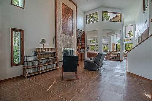 Architectural features galore! Waterfront home sitting on 1 acre. Ceilings that soar in spacious living area, sunken room open to kitchen that has amazing views of water. Built in book shelves throughout, master features balcony over looking the water, guest suit with separate entrance.