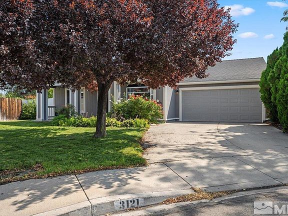 PRICE REDUCTION!!! SELLER IS MOTIVATED!! Welcome to 3121 May Rose! This 3 bedroom, 2 bathroom, 2 car garage home features one of the largest lots in this quiet community bordering Mira Loma park, with the stream running walking trails directly behind the home.The backyard oasis has 2 large paver patios, custom lighting, a storage shed painted to match the home, and a grassy area for the dogs and kids to play., The interior features a kitchen with newer appliances, butcher block countertops, and a large bay window offering plenty of natural light into the home. The main living space and the master bedroom both have vaulted ceilings, and the garage is finished with cabinetry and a workbench. Conveniently located off Mira Loma between McCarran blvd and Veterans Parkway, this home is close to everything