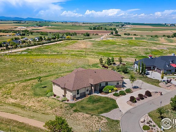 Brand new interior and exterior paint 8.2024. Cherry wood floors professionally refinished 8.2024. Picturesque Rocky Mountain Views! Enjoy the scenic unobstructed views of the entire Front Range! These are the views they talk about in Colorado! Wonderful ranch home in Berthoud, situated on the hill looking West, a perfect Southeast facing lot, w/ amazing Western views, pictures don't do the setting justice. Desirable open ranch situated in the amazing Serenity Ridge neighborhood. Just minutes from Main Street in Berthoud, the TPC PGA Colorado course, city parks, trails, & lots of amenities. Pride of ownership throughout. High-end kitchen, cherry floors, hickory cabinets, trim, & upgrades throughout! Newer roof, newer upgraded luxury fixtures, newer water heater, attractive stone front, granite counters, walk in pantry, high-end efficient HVAC, upgraded tile, ceiling fans, fireplace, a great place to call home. Open, bright, inviting layout, lots of natural light, vaulted ceilings, desirable floor plan, for relaxing or entertaining. 5bd, 4ba, 4+/-car garage, almost 5,500 sqft, walkout on all levels to the beautiful Colorado views. Established welcoming community, mature trees, trails, quiet, & peaceful. No one behind you, HOA open space & more. Lower maintenance home, on .7 acre! Great street appeal, covered patios, nice landscaping, perfect yard off the nice walkout basement patio. Inviting patio expands into the backyard, great for entertaining, playing or just relaxing. Spacious family room w/ open dining & kitchen area great for entertaining. Come retreat to the primary suite, featuring nice layout, vaulted ceiling, soaking tub, huge walk-in closet, an amazing master setup. Basement is 50% finished, w/ lots of storage & room to expand. Easy access to the foothills, lots of parks, trails, reservoirs, Berthoud, I-25, shopping, services, & all of Northern Colorado. This amazing home with beautiful snowcapped views, doesn't come available often, this is a must see!