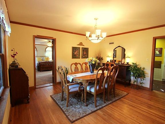 You will instantly relax and feel at home when you walk into this charming 1-1/2 story stone and stucco home. As you go from room to room, you'll appreciate the attention to detail from the hardwood flooring to the crown moulding and vaulted ceiling. The main level offers a large master bedroom with a sitting area and en suite bathroom; a formal dining room; a living room with a fireplace and built-in shelving; a kitchen with an eating bar; an office that can be used as a fourth bedroom; a dining alcove/sun room; and a screened-in porch that exits into the lush backyard. The upstairs lends family or guests privacy with two spacious bedrooms and a bathroom, while the basement offers a cozy family/rec room with built-in wood shelving and a fireplace, along with a separate workshop and laundry room. Located on a serene 1.77 acre wooded lot along the Little Arkansas River, you will enjoy swimming in the above ground pool, relaxing in the free-standing hot tub, and entertaining on the expansive wood deck. This house has been well maintained and is ready for its new owner. If you're looking for a forever home in the city but want to feel like you're in the country, you'll want to see this house and property right away.