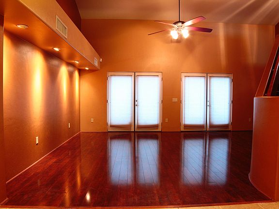 Seize the opportunity while it lasts!! Stunning, 2 bedroom, 2 full bath + Office Olsen Townhome! Priced to sell, won't last!! Fully upgraded and cozy town home, boasting hardwood and tile flooring, granite counter tops, accent lighting throughout, custom paint, set up for surround sound in the den/office/potential 3rd bedroom, oversized walk-in master closet, with HUGE private master patio, alarm system, and pavers and astro-turf in the yard.