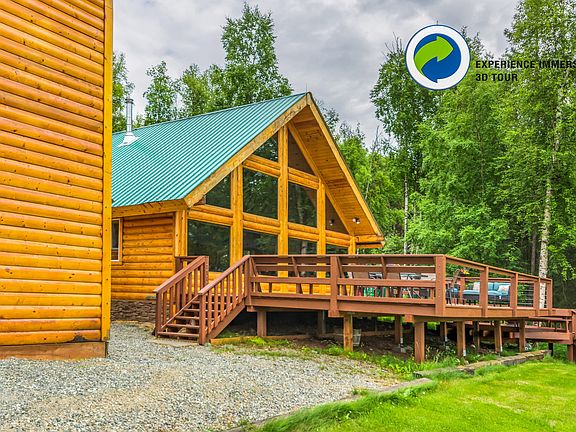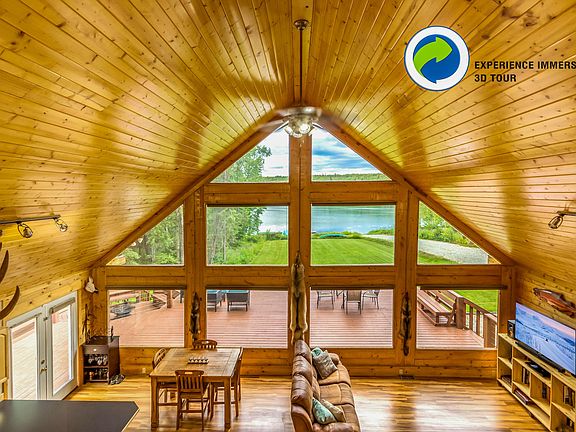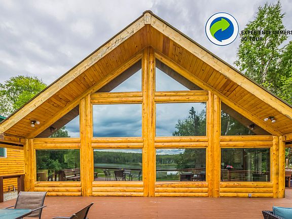 view the 3D Immersion Tour, Listen to the wild sound of the loon call in the morning, fish off your own dock, store you float plane in the hangar, view the lake from the comfort of this stunning log home while you warm your self in front of the wood stove This is a place to call HOME. Square footage does not include the cabin which the owner has rented for as much as $800 per month.