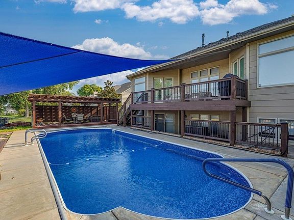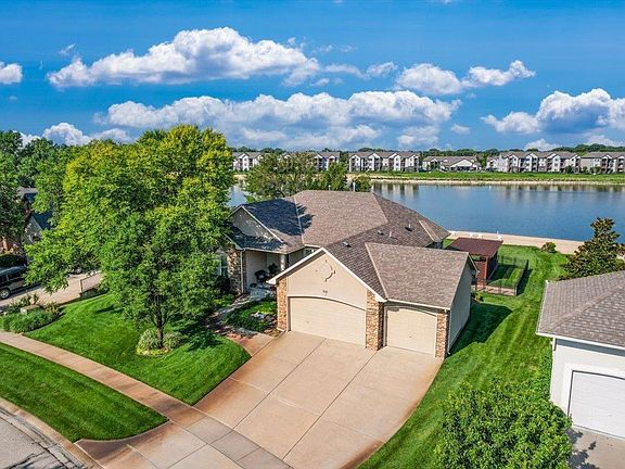 A rare opportunity to live on a boating/ skiing lake in West Wichita with a sandy beach and in-ground pool! This 4 bedroom, 3 bath home also has a partially finished work-out room and a bonus area in the basement. The main floor of the home has been updated with luxury vinyl flooring and Anderson vinyl clad exterior French doors in the primary bedroom and living room. It features 2 living spaces separated by a see-through fireplace and both have windows overlooking the backyard oasis, the beach and the 40 acre lake. The kitchen has maple cabinetry, solid surface countertops and a large walk in pantry. Featuring counter space and plug-ins to hide those small kitchen appliances while keeping them accessible. The primary bedroom is huge w/ windows overlooking the lake and a door out to the deck for that morning coffee as the sunrises over the lake. The primary bathroom has a modern feel w/ black tile surrounding the tub and in the oversized shower, there are two sinks, a private commode and an oversized closet with a built-in dresser. The main floor also includes an additional bedroom and a laundry room. The West side of the home features Hunter Douglas light filtering shades and there are wood blinds on the front windows of the home. The walk-out basement boasts a large family room with access to the backyard, 2 large bedrooms, a full bathroom, a concrete safe room, and the bonus spaces plus ample storage space. The fenced back yard is a dream with the in-ground pool and a pergola; ideal for getting some shade in the heat of the day or setting up a table & chairs for entertaining. Past the fence you still have a vast amount of yard (This could be fenced) including both grassy area and tons of sandy beach perfect for adding a bonfire area and having sunset set s’mores! The home is located in the desirable Ridge Port neighborhood, is in the Maize school district and is only a few miles from New Market Square featuring tons of options for shopping and dining. Ridge Ports 40 acre lake is surrounded by 1 mile of sandy beach and allows pontoon boats, jet ski's, ski boats and swimming and fishing. The neighborhood also has a pickle ball court, basket ball court, an in-ground pool, and park.