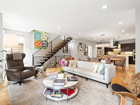 Fabulous contemporary half-duplex in the heart of LoHi. This home offers 4 bedrooms, 5 bathrooms, open concept living on four floors, plus a rare 3-car garage and private backyard! Fabulous high-end finishes throughout, including imported tile, wide-plank white oak hardwood flooring and floating stairs. For those who love to cook, the kitchen will not disappoint with a JennAir appliance package, including built-in convection/microwave/air fryer, 5-burner gas cooktop and an efficient pantry. Stay warm on winter days beside the stunning gas fireplace in the sunny family room which is surrounded by floor to ceiling windows. All four bedrooms are spacious, and the master features a 5-piece en suite bath with radiant flooring, floating tub, huge shower, large walk-in closet, plus a private balcony. The second floor also features a second bedroom with its own en suite full bathroom and private balcony. There is also a laundry closet on the second floor. The fully finished basement offers a huge family room, plus a conforming bedroom and a fourth full bathroom, perfect for guests. The breathtaking rooftop entertainment space allows you to enjoy all the seasons indoors and out! Featuring a wet bar and big sliding glass doors that lead out to the rooftop patio which has a built-in gas fireplace and views of the Denver skyline. This home also has a rare 3-car garage which is great for vehicles and gear. The private backyard is perfect for pets and a great space to grill and unwind. Amazing access to all of LoHi is right outside your door with tons of great restaurants and boutiques within a few blocks in any direction. And the pedestrian bridge to lower downtown and Union Station is just 3 blocks away, offering you access to the entire city!