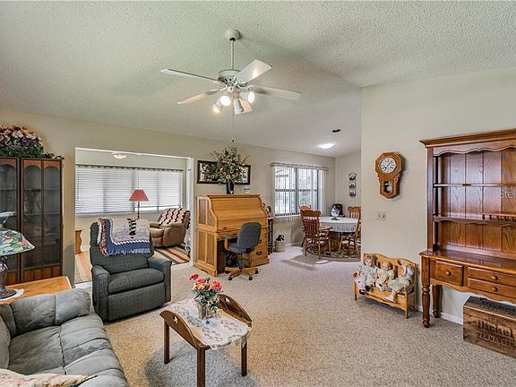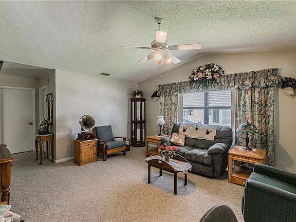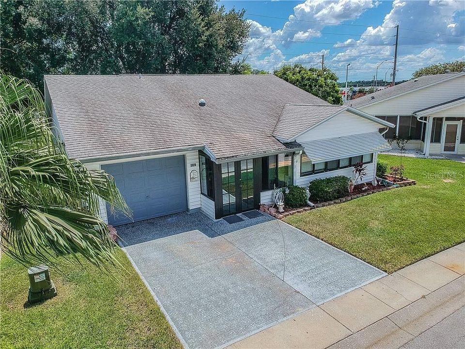 Great home in the wonderland 55+ community of Highland Fairways! As you pull up to this 2BR/2BA home, you'll first notice the towering oak standing guard over the backyard. The front of the home features an enclosed porch with double doors which allows you to enjoy the outside no matter what the weather. Entering the home, you'll find yourself in a Florida room that has wall to wall windows. Walking into the main home is the living room where you'll find vaulted ceilings. The kitchen and dining room are off to your left. Heading through the living room leads you to the main bathroom, second bedroom, and the master bedroom. The master bedroom has 3 separate closets and its own en suite bathroom with dual sinks and linen closet. There's also a large 12'x8' laundry room, and a garage for parking out of the weather or using as a workshop. The back of the house is shaded from the large oak tree and has an outdoor shed. The clubhouse at Highland Fairways features a heated pool, jacuzzi, exercise room, shuffleboard and bocce ball. The HOA fee covers lawn service and cable/internet service. Call now to tour this wonderful home!