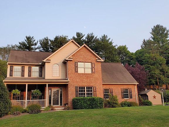 This beautiful 4 bedroom, 3.5 bath home in Southern Schools sits on a manicured 0.55 acre lot that boasts gorgeous indoor and outdoor living space. The home has beautiful curb appeal and a welcoming front porch. As you enter the front door you are greeted with a beautiful 2 story foyer and staircase. The main level has hardwood floors throughout including oak in the foyer and contrasting walnut throughout the remaining first level. The well appointed kitchen has granite countertops, updated black stainless steel appliances, a desk area, a breakfast bar, and plenty of storage in the 40 inch solid wood cabinets. The family room opens into the kitchen and features a gas fireplace and bright open windows overlooking the beautiful backyard. The main level also has a formal dining room and formal living room with crown mouldings and more of the beautiful walnut floors. The second level features 4 spacious bedrooms including a primary suite with full bath and walk in closet. The laundry is also conveniently located on the second level. The basement is fully finished with a den and bonus room as well as a large family room with gas fireplace and built in keg system and wine fridge. The basement also has a walk through door for egress. The home has an in-ground saltwater pool with new liner, new pump, and new filter system. The backyard is terraced with a professionally built stonewall, beautifully planted flower gardens, and stately stone steps leading to a wooded area for your hammock and evenings by the campfire watching the sunset. The backyard living space also has an outdoor kitchen, multiple patios, a deck, and two fire pits. Come check out this beautiful home and outdoor oasis conveniently located near the town park and dog park, the heritage rail trail, I83, state and county parks, shopping, and dining! This home includes a 1 year Home Warranty!