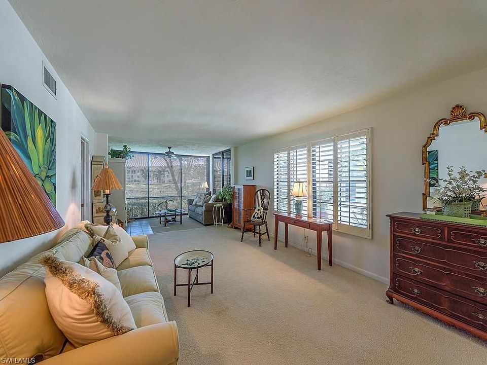 C.14141 Lake View! First floor condo located West of US41. Two glass enclosed sunrooms, one at each end. Located near community pool. Covered and open parking, extra storage. Moorings Beach membership is available. Convenient to banking, shopping and dining.
