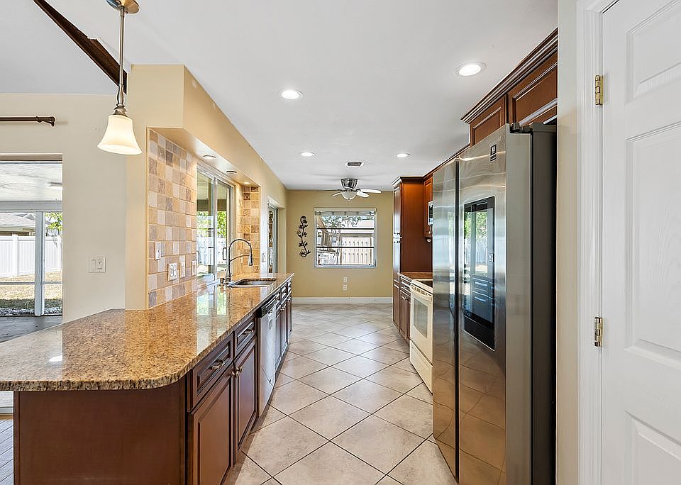 Priced to sell! Imagine owning your personal sanctuary in the coveted Cornwallis neighborhood of SE Cape Coral! Nestled between a serene canal and the majestic Caloosahatchee River, this exceptional residence boasts an expansive .23-acre lot with a securely fenced backyard – your private haven for family, pets, and peaceful enjoyment. Convenience is paramount, with effortless access to Fort Myers via the Midpoint and Cape Coral Pkwy bridges. Within a short drive, discover an array of essential amenities, including Publix (2.8 miles), Racetrac (1.7 miles), Walmart (3 miles), and a diverse selection of dining options along Del Prado. Step inside this luminous and airy 3-bedroom, 2-bathroom home, where soaring vaulted ceilings and timeless wooden beams create an impressive ambiance in the main living area. Seamlessly transition to the screened lanai through glass sliding doors accessible from the master bedroom, family room, and kitchen. Envision the possibilities of opening all four family room sliding panels, creating an expansive indoor-outdoor entertaining space perfect for Florida living. The updated kitchen is a culinary delight, featuring elegant granite countertops and a stylish tiled backsplash. Experience the cutting edge with a new Samsung Microwave and Refrigerator, both equipped with wifi connectivity and smart features, including calendar syncing, recipe access, music streaming, and more, all at your fingertips via the refrigerator's touchscreen. Both bathrooms have been tastefully updated, with the master bath offering the luxury of his and her vanities with sinks, separate from the toilet and shower room. The laundry room provides ample storage and includes a new Samsung washing machine for added convenience. Enjoy peace of mind with significant recent upgrades, including a 2021 HVAC replacement and a brand-new roof installed in 2023. Rest assured, this property remained untouched by floodwaters during recent hurricanes, and all assessments are fully paid. Whether you are embarking on homeownership for the first time, seeking a more manageable space, or desiring a perfect vacation retreat, this property undeniably fits the bill. This is an exceptional opportunity to claim your own piece of paradise in beautiful Cape Coral. With motivated sellers and a price set well below market value, now is the time to seize this incredible chance. Do not let this dream home slip away – schedule your tour today and submit your offer!