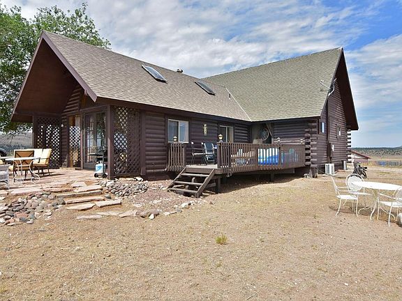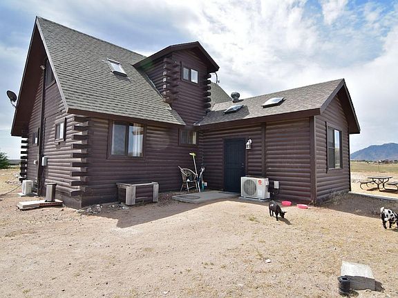 Great horse property on 4 acres with 360 degrees views of the surrounding mountains! This log construction home has lots of charm. Current owners have made upgrades to the home including mini-splits, new pressure tank, updated electrical panel, extended the deck, replaced windows and replaced the Well house roof. The home has a large laundry/mud room and additional large living room area. The master is located on the 2nd floor while 2nd and 3rd bedrooms are on the 1st floor. The exterior offers nice landscaping, outdoor entertaining space and a fantastic set up for horses and farm animals; Including a chicken coop, barn, corals and shade cover. Wells in this area are low producing so the seller has installed a 2000 gal water tank. Property can not be financed through VA.