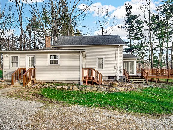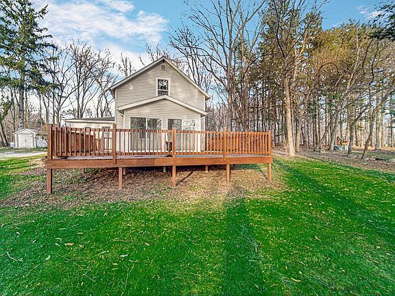 Come take a look at this adorable Cape Cod home, tucked away in it's partially wooded 1 acre lot. As you walk in the main entrance you enter the laundry area which features it's own sink! Continuing throughout the main floor you'll find a full eat in kitchen, large dining and living area, full bathroom, a bedroom, and access to the front three season room. Off the three season room is a newly built deck to enjoy this summer! Upstairs are the additional two bedrooms and extra closet space. This home is perfectly nestled on its lot, with enough space for privacy. Plenty of space to build on a garage, or anything else you'd dream of having. Make it yours!