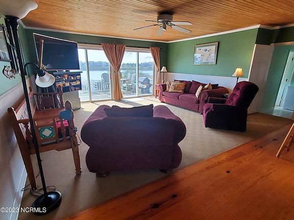 Holden Beach -Supply Area- ICW Home with pier and boat lift, 105 frontage on ICW,2 bd. 3 bath home, (third bath is on ground floor) open floor plan, spacious kitchen, Bead and Board ceiling in den area, hardwood floors, kitchen, den and two bedrooms has views of ICW. each of these rooms open up onto the back deck, recreation room down stairs with full bath, lots of storage ( not counted in the square footage) beautiful views, beautiful water Oaks, large lot ( .60 of an acre, 105x243x105x243) tile in bathrooms and vinyl. Living area on ground floor not counted. Home needs some TLC. Chair lift to second floor (not sure if it operates). Wide hallways, Lots of storage and recreation room or large workshop. (ground floor). Great location, located in Tanglewood Area a Waterway community with boat ramp and pier. Big lot with ICW Frontage