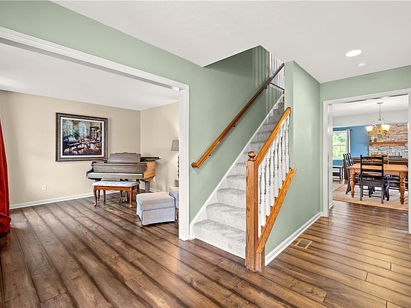 Do not miss this amazing home in South Fayette's Willowbrook community, nestled on a wooded homesite within the cul-de-sac minutes from Rt 19 shopping & dining. Great curb appeal with front porch & mature landscaping. Spacious EI Kitchen loaded with cabinetry & prep space! Kitchen also boasts island with bar seating, SS appliances & gas cooking. Sprawling FR features gas FP with floor to ceiling stone surround, vaulted ceiling & access to deck. Perfect for entertaining! Formal LR, DR, den, pwd room & FF laundry round out the FF. On the UL you’ll find a large primary suite w/ 2 WI closets & ensuite bath including a soaking tub & separate shower. 3 generously sized bedrooms & hall bath w/large vanity also on UL. Large finished walk-out bsmt is great for hanging with friends! Featuring a kitchenette & full bath with living space & flex space, currently being used for office. Fenced in side yard with patio & walk-out access from the bsmt + pool & deck too! So many options for outdoor fun!