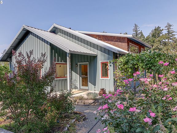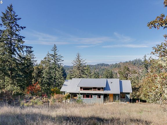 Welcome to Lavender Hill Sanctuary, a Modern Craftsman retreat built in 2014 by Rainbow Valley Construction. Set on over 30 rolling acres in South Eugene, this home highlights sustainable design, quality craftsmanship, and thoughtful accessibility. Interior finishes include bamboo floors, tile in the bathrooms, and durable linseed-based Marmoleum flooring in the kitchen and laundry, along with aluminum-clad casement windows. The one-level layout offers easy-flow spaces, a curbless shower, a walk-in soaking tub, and a well-designed kitchen. Guided by a Forest Stewardship Plan and permaculture design, the land is alive with lavender, fruit trees, grapevines, and diverse perennial plantings. Deer-height fencing surrounds raised beds with asparagus, artichokes, and more. As part of the permaculture approach, a rainwater catchment system collects from the metal roof and gutters, providing about 1,000 gallons of storage to help sustain the gardens. A seasonal water feature comes alive with frogs and wildlife in the fall. At roughly 1,000 feet in elevation, the property offers territorial views, meandering trails, and a southwest corner with a beautiful vantage point of Spencer Butte. The property also includes partial perimeter fencing and a 4-stall shed row barn. Lavender Hill Sanctuary offers peace, privacy, and a lifestyle in harmony with nature, all just minutes from town. Please note: Automated “price per sq ft” figures shown on third-party sites don’t apply here. This property includes 30± acres of land, utilities, and improvements.